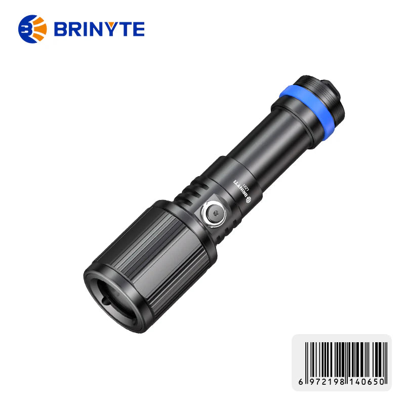 Brinyte LZ01 long beam distance search light is useful in your underwater and search activities. With max 425000 cd, beam distance of 1300 meters, and utilizing one 21700 USB Type-C 5000mAh rechargeable Li-ion battery, the LZ01 is one of the strongest torches in its class, which can easily meet the diving, searching long-range lighting needs. Single operation switch, one-click to switch modes in the cycle of HIGH-LOW-OFF. Rotating head to adjust beam angle, and it is easy to deal with dive searching in different environments.